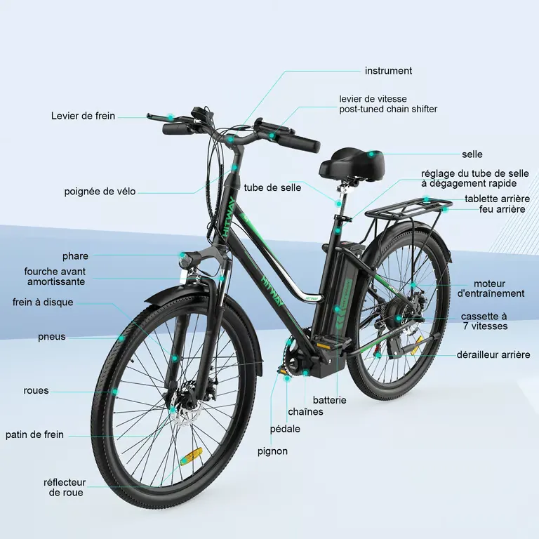 Vélo Électrique HITWAY Noir 26 POUCES 250W 36V 11.2Ah Shimano 7 Vitesses E-Bike
