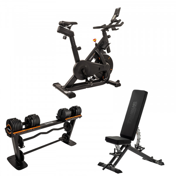 - Set Taurus Performance avec vélo de byking IC70 Smart, set haltères Selectabell System ainsi que le banc de musculation B900