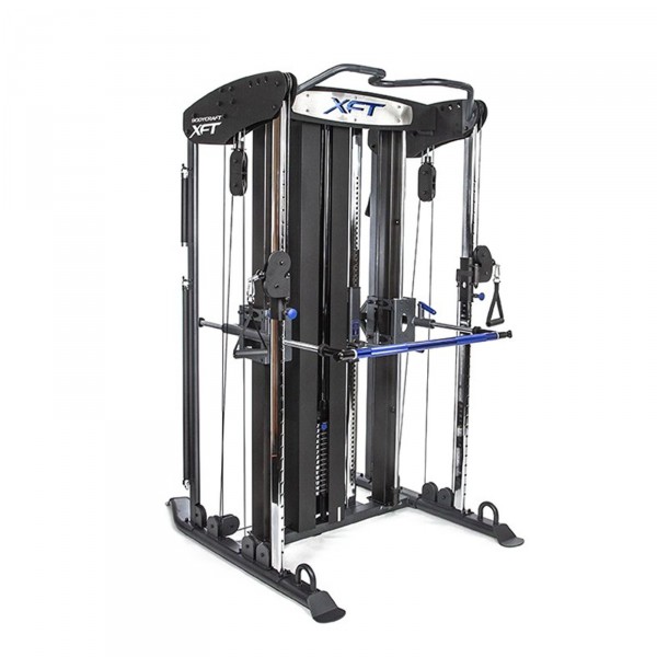 La station de musculation Bodycraft XFT (Xtreme Functional Trainer) offre la liberté et la polyvalence d’un entraînement avec haltères en combinaison avec la sécurité d’une Smith Machine ou d’une machine guidée. La Smith 3D se démarque tout particulièrement. Il s’agit d’une barre guidée qui peut être déplacée à la fois horizontalement et verticalement. La XFT est équipé d’une double poulie réglable en hauteur sur 32 positions et pivotante à 180° ainsi que d’une station de traction.