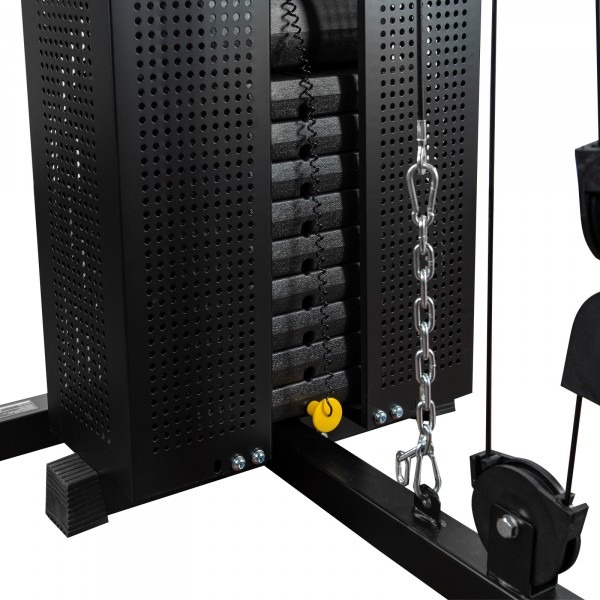 • Poulie basse pour réaliser des biceps curl ou des kicks-back pour les fessiers