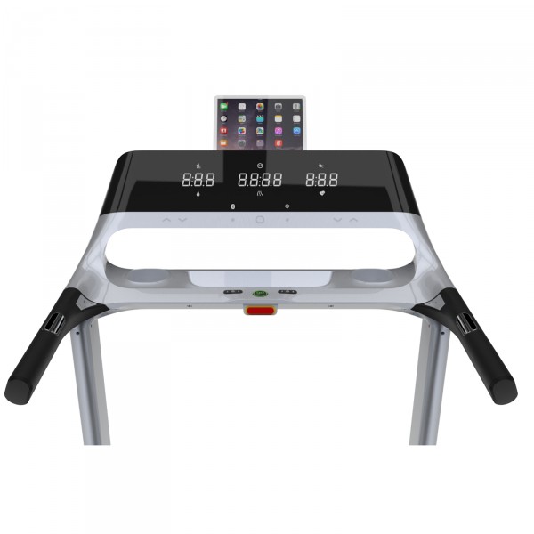 Le tapis de course est équipé du Bluetooth et compatible avec l’application fitDisplay Connectez vos appareils au tapis et profitez d’un entraînement personnalisé. Avec l’application FitDisplay, vous disposez d’un vaste choix de divertissements, de suivi des séances d’entraînement et bien plus encore. Vous pouvez participer à des compétitions avec d’autres utilisateurs et accumuler des points bonus. Avec le programme Sprint 8 intégré, vous pouvez effectuer des entraînements intensifs par intervalles.