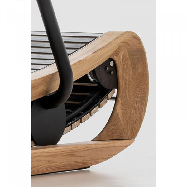 Le cadre du Sprintbok est en bois dur massif, qui a été transformé en un cadre en bois courbé. Sur le plan fonctionnel, le cadre en bois contribue à réduire les vibrations pendant la course. À partir des barres de maintien solides, il existe une surface de préhension élégante et stable avec un plateau de 17,3 pouces pour l’application Sprintbok. À l’aide de l’application, le coureur a un aperçu constant de ses données de performance et peut choisir entre différents entraînements en cours d’exécution ou des courses de paysages. La surface du tapis roulant se compose de 62 lattes en bois et au revêtement en caoutchouc.