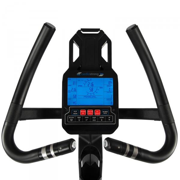 Pour varier l’entraînement, le Vélo d’appartement cardiostrong BX50 vous propose 19 programmes, dont 4 contrôlés par le pouls. Les programmes contrôlés par le pouls adaptent l’intensité de l’entraînement à votre niveau de forme physique afin que vous vous entraîniez toujours dans votre plage de fréquence cardiaque optimale. Le Vélo d’appartement cardiostrong BX50 possède des capteurs de pouls manuels intégrés pour un entraînement encore plus précis. Une ceinture pectorale disponible en option peut également être utilisée.