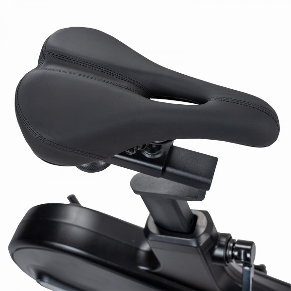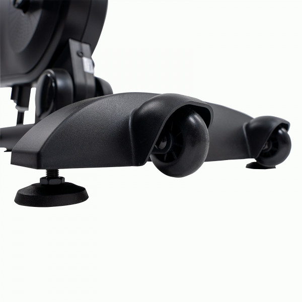 La selle et le guidon peuvent être réglés en hauteur sur 10 niveaux. Cela se fait rapidement à l’aide des leviers de réglage. Tous les niveaux de hauteur sont marqués – si plusieurs personnes s’entraînent avec l’appareil, chacune retrouvera rapidement sa position assise préférée. Avec 20 cm, le Q-factor (écart entre les pédales) est suffisamment faible pour un pédalage confortable. Si vous préférez vous entraîner avec votre propre selle ou avec des pédales compatibles SPD, vous pouvez facilement échanger les deux.