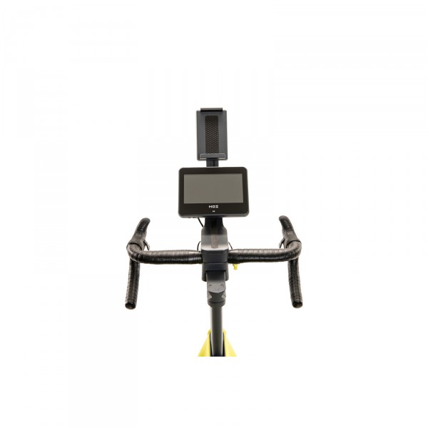 Avec une roue d’inertie de 8,5 kg et un rapport de transmission de 1:7, le vélo offre un mouvement et permet ainsi un entraînement efficace et doux pour les articulations. Les selles et guidons de course de haute qualité, réglables verticalement et horizontalement, ainsi que les pédales à clic combinées garantissent un entraînement efficace et confortable. Le changement de vitesse électronique sur le guidon permet une expérience de conduite réaliste comme dans les courses de rue.
