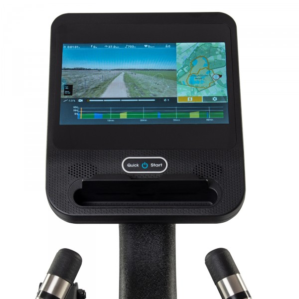 La console tactile offre une image nette – parfaite pour regarder vos séries. Netflix est également préinstallé, ainsi que YouTube et Kinomap (des abonnements payants sont nécessaires pour utiliser Kinomap et Netflix). Kinomap vous offre la possibilité de suivre les vidéos d’entraînement filmées par d’autres utilisateurs. Dans la version d’essai gratuite, quelques itinéraires seulement sont disponibles.